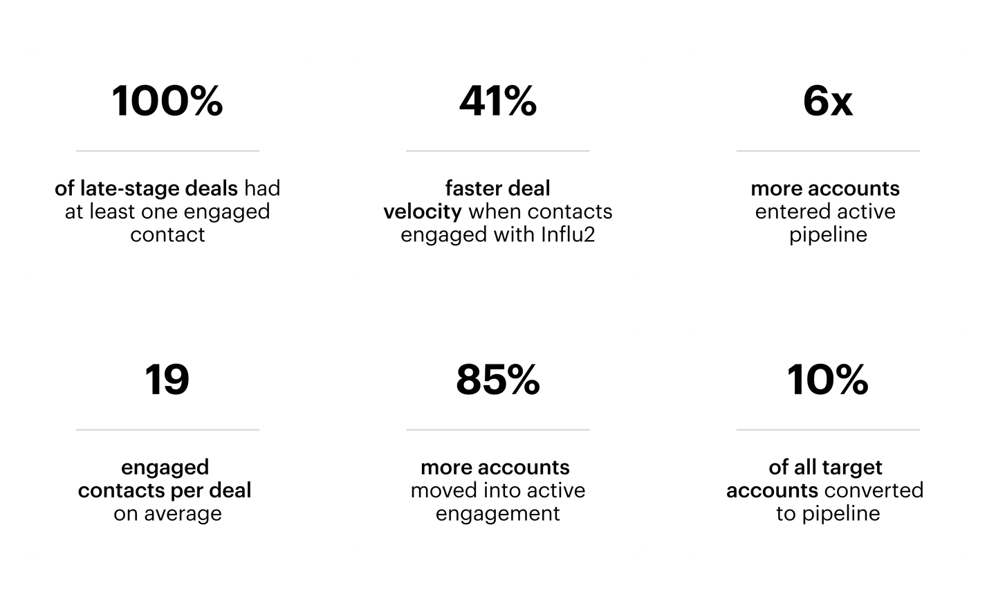 The results speak volumes: 6x more accounts entered active pipeline, and deals influenced by Influ2 moved 41% faster through the funnel.