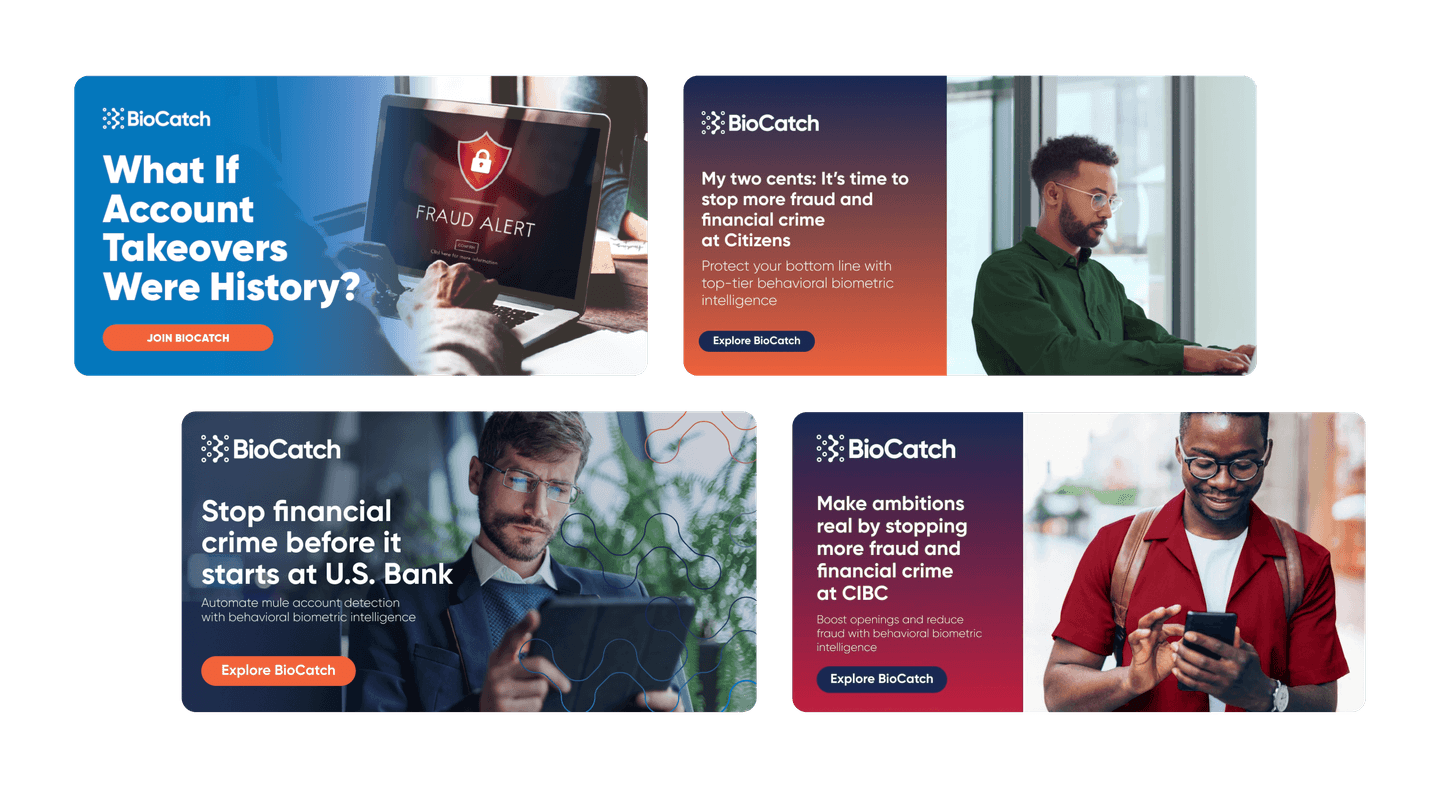 From introducing BioCatch to new audiences, reinforcing value with in-flight decision-makers, creative assets evolved from trust-building content to ROI-driven proof points, ensuring continuity across the buyer journey.