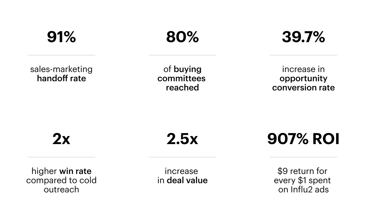 These campaign results didn’t just influence pipeline—they influenced the business. Bonterra now uses Influ2 performance data to align quarterly ABM priorities, secure budget for future initiatives, and demonstrate cross-functional success to senior leadership.