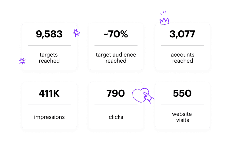 The PBA campaigns yielded impressive results. The marketing team was able to reach around 70% of the target audience, which covered 9,583 targets. from 3,077 accounts.