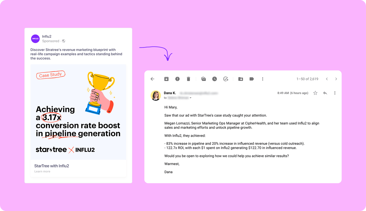 That’s where contact-level advertising becomes non-negotiable. Influ2 lets you: