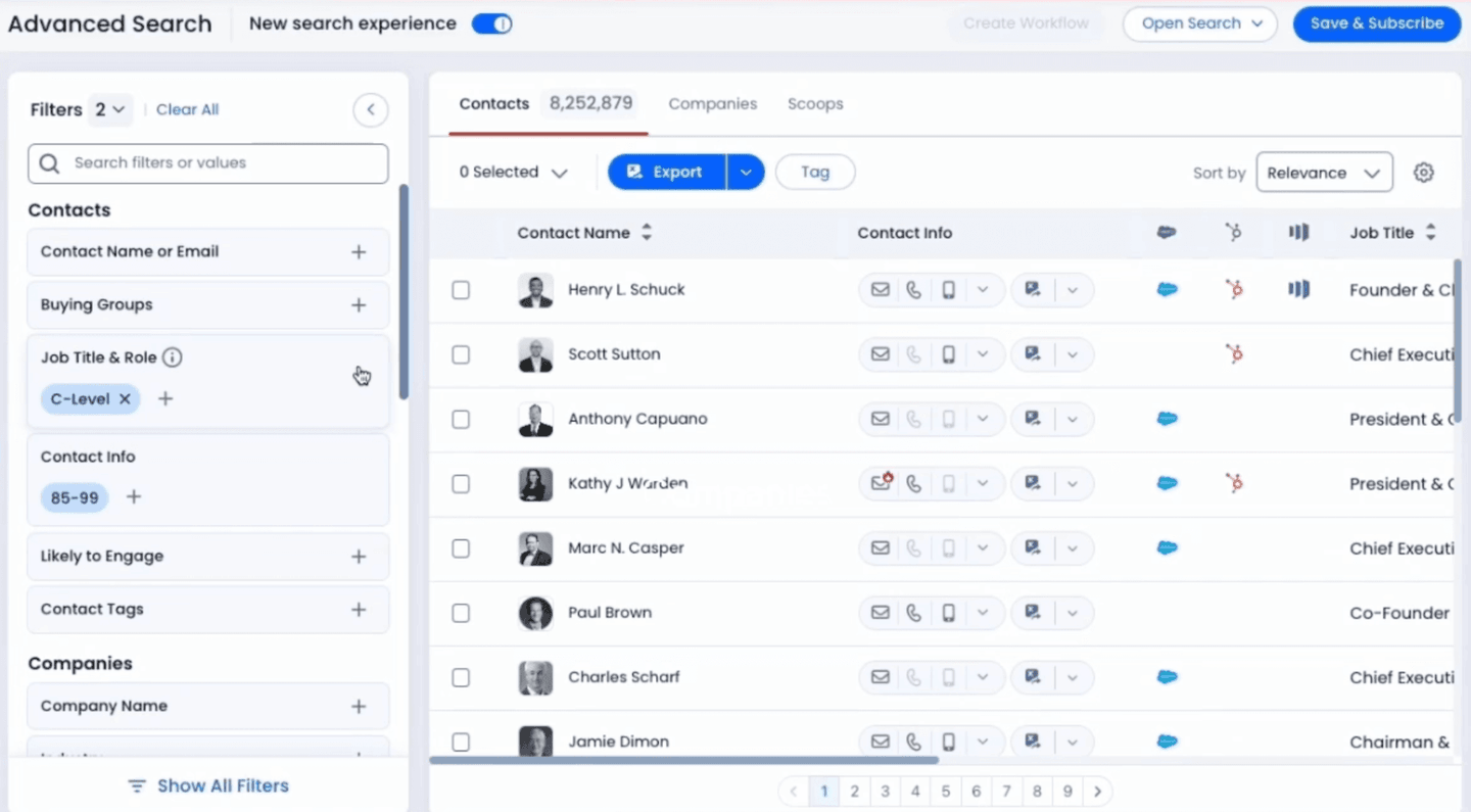 As one user says: “You can find 90% of your desired contacts in seconds. I’ve run lead generation for multiple companies in tandem with sales and marketing, and ZoomInfo has been the best tool.”