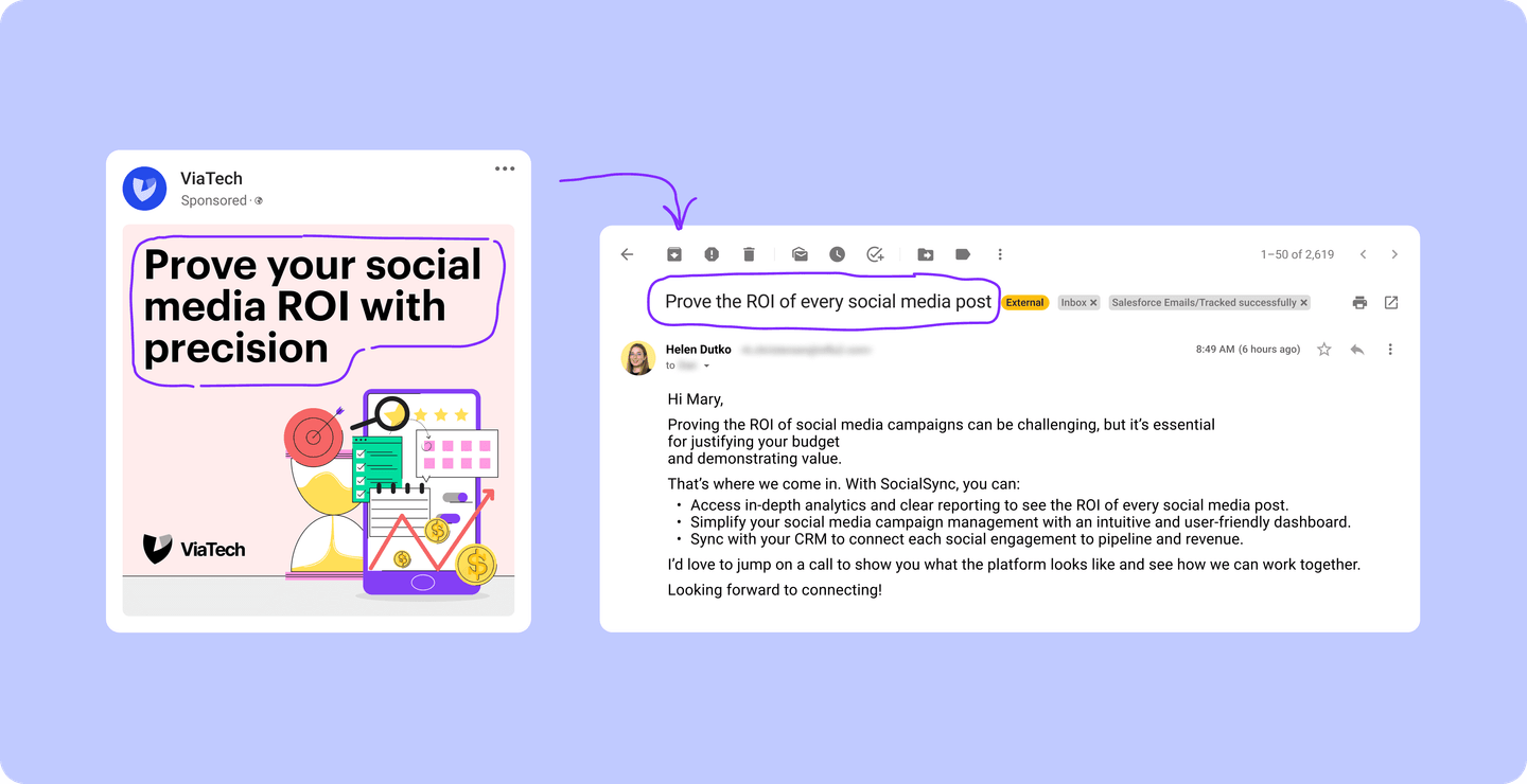 The contact-level intent signals your ads generate go straight to your CRM, so reps have context where they need it and can align their email outreach with demonstrated intent.