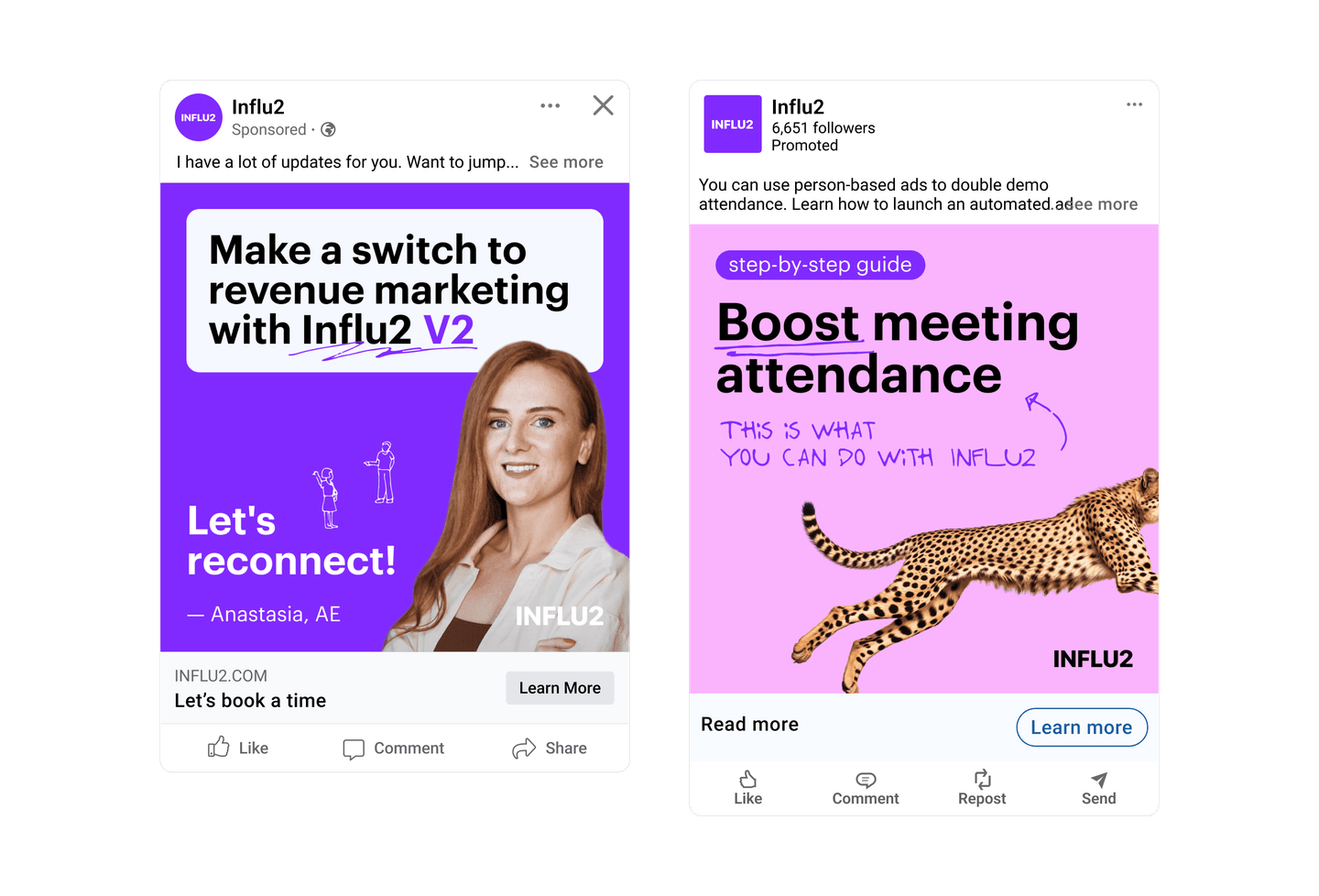 5. Demo show-up campaigns. After the call is booked, ads can also help you boost its attendance. Feature content that reminds attendees of an upcoming meeting and incentivizes attendance. Ads with personalized invitations from account executives can do the trick.