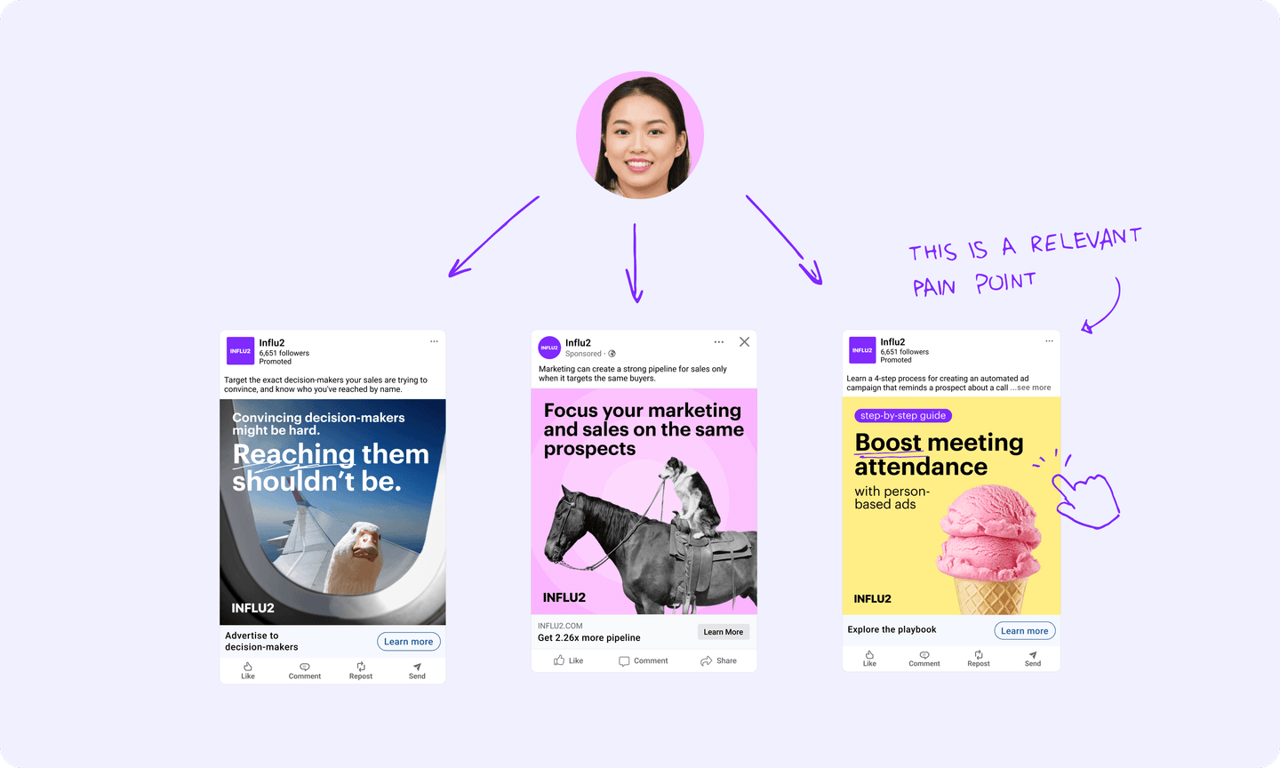 One strategy we use at Influ2 is running ads featuring the SDR who is actively reaching out to their prospects.