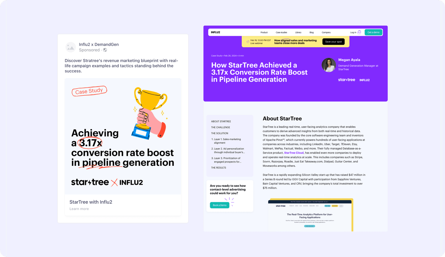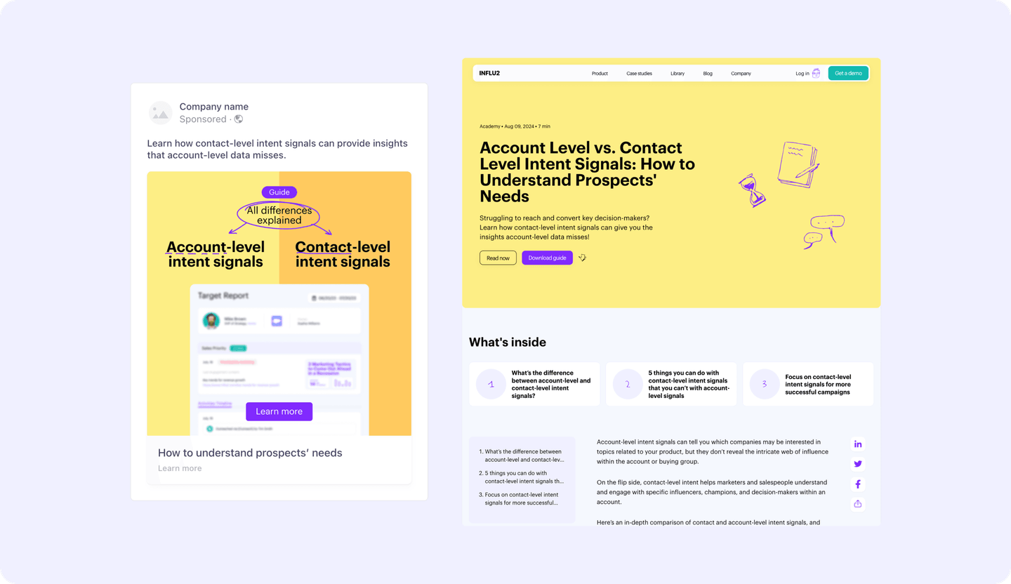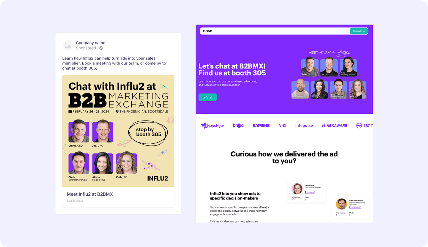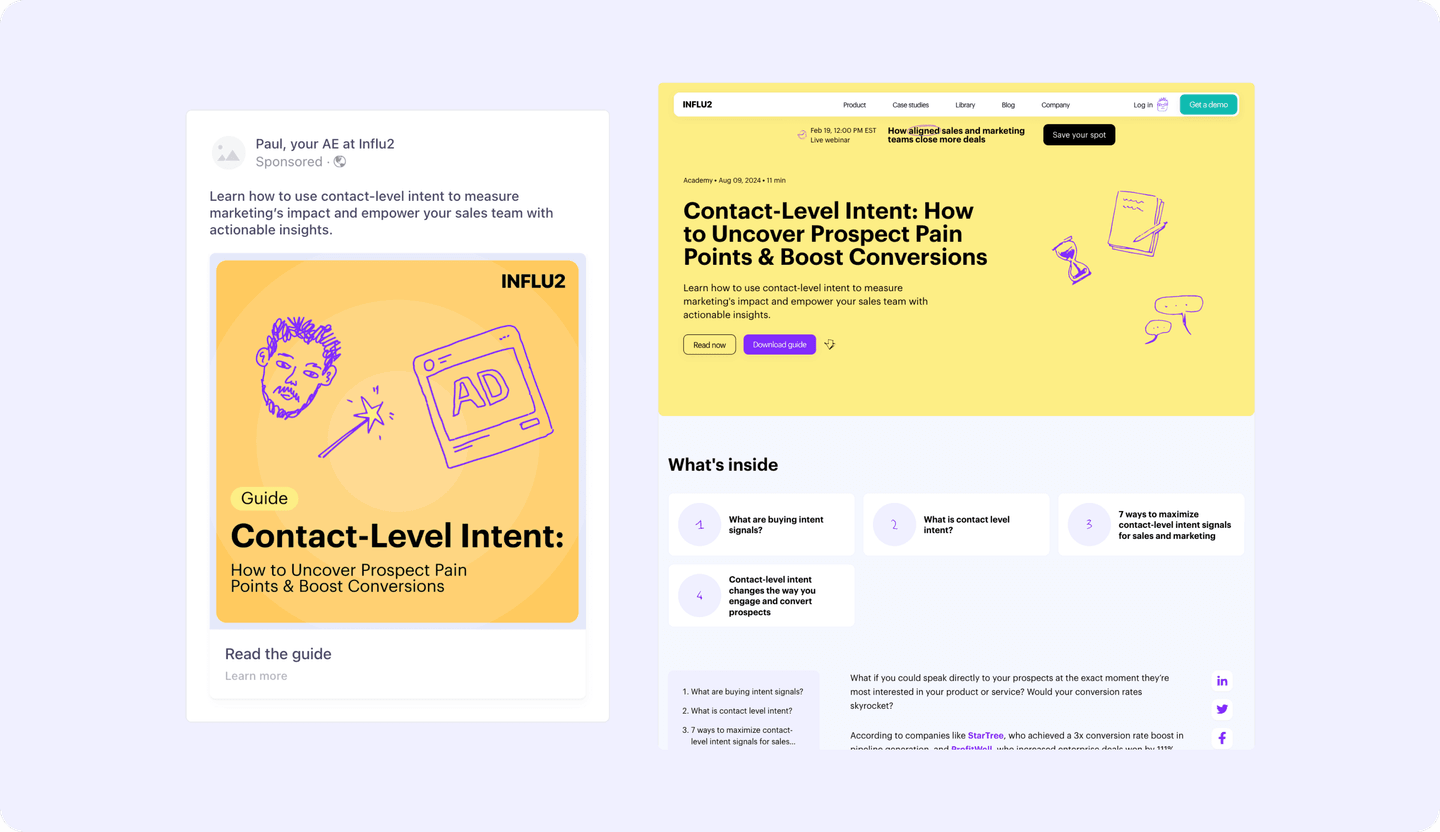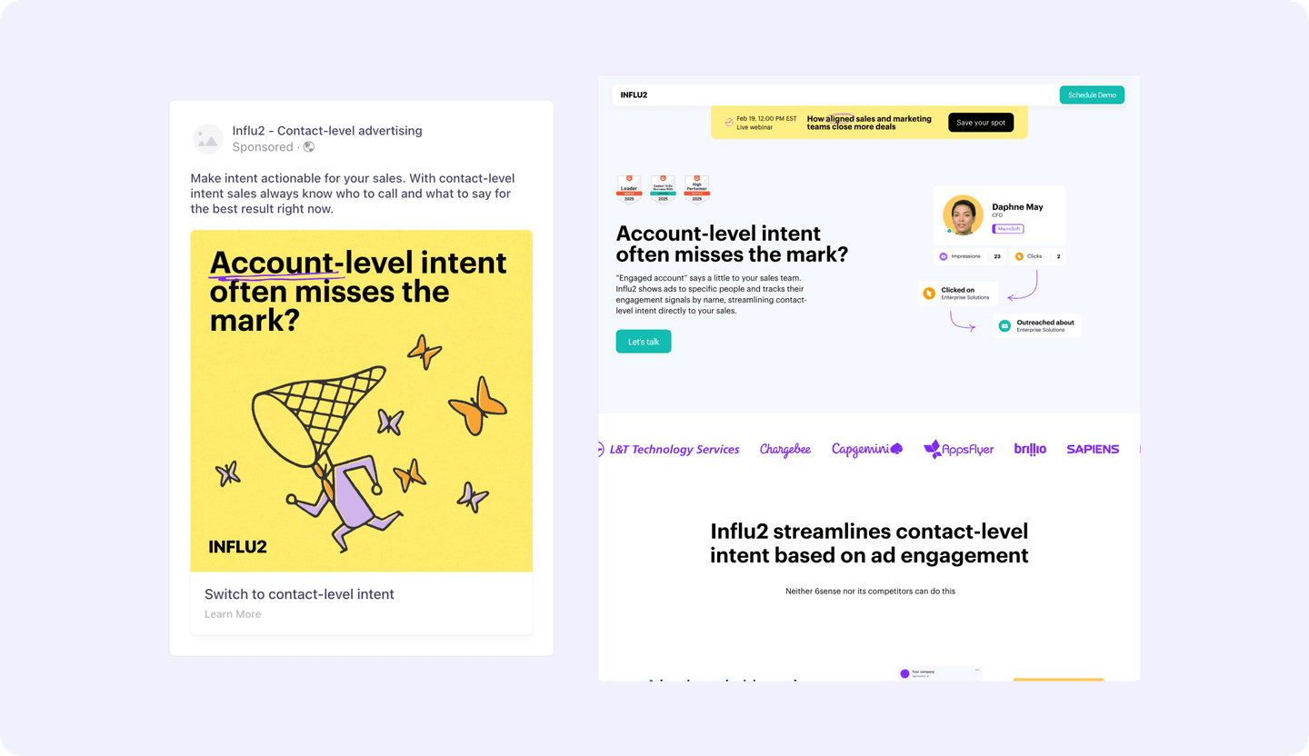 At Influ2, we do this primarily through contact-level advertising, designing ad journeys that adapt based on prospect engagement and that align with the SDR outreach process.