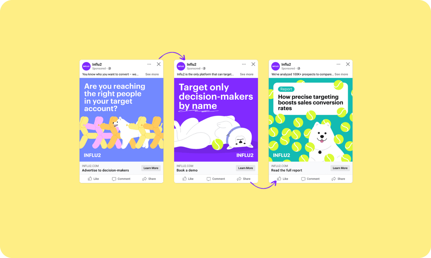 As accounts move through the sales process and buyers’ awareness grows, our ads become increasingly personalized.