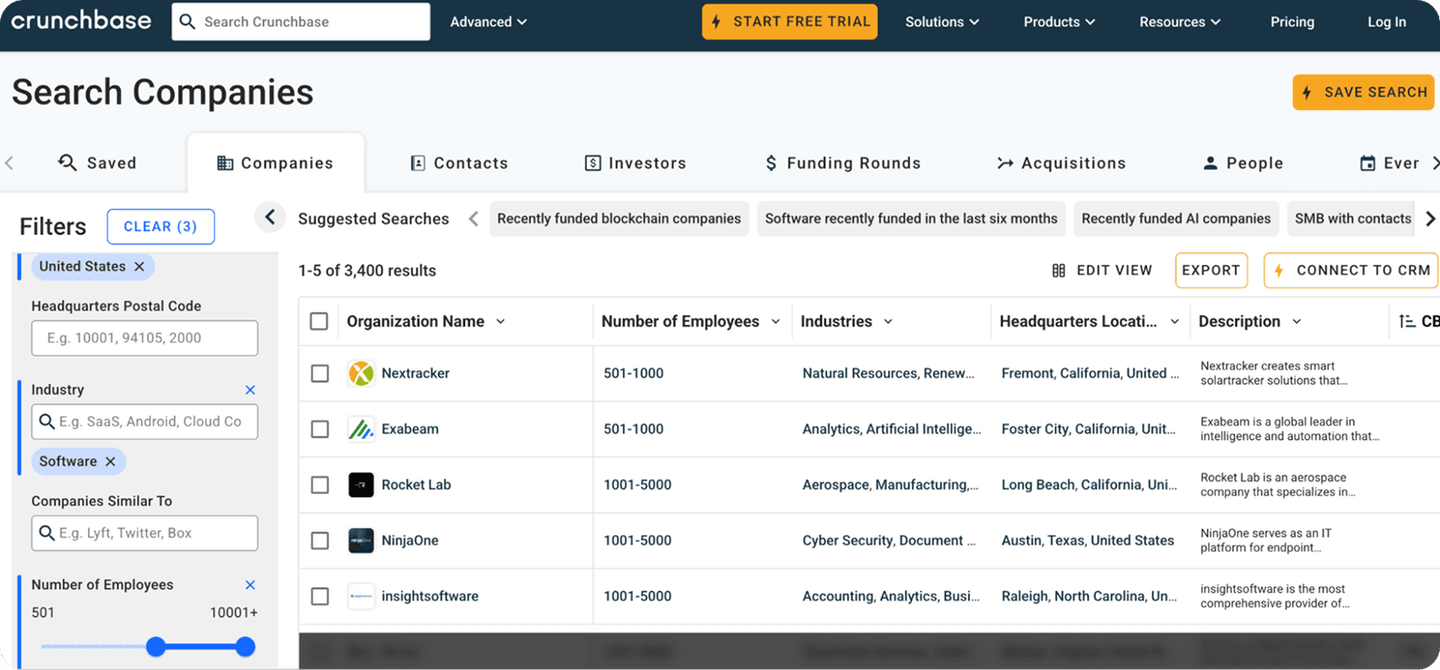 We then search for companies that meet our ICP criteria on LinkedIn Sales Navigator and Crunchbase to build lists of target accounts.